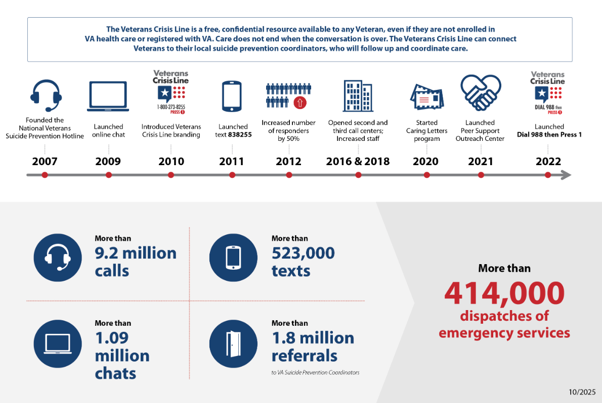 The Veterans Crisis Line offers support 24/7. If you’re a Veteran in crisis or worried about a Veteran, call, chat, or text now.